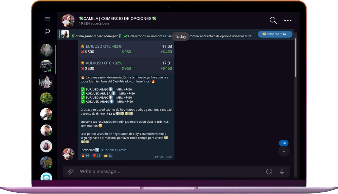 No te preocupes, en unos días podrás entender todo y comenzar a ganar tu primer dinero. Podrás operar con mi comunidad de 19,000 miembros! Recibe señales, realiza operaciones y obtén ganancias garantizadas.